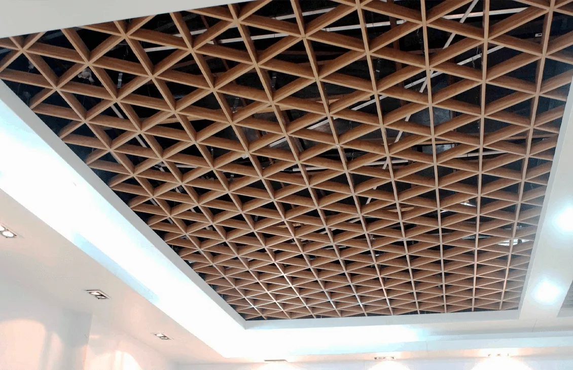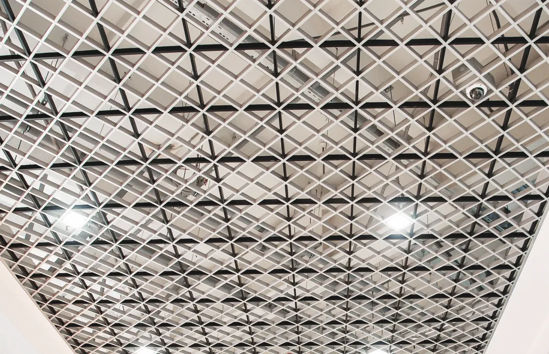 Подвесной металлический потолок Грильято D15 Диагональное 150х150 — это современное и надежное решение для оформления потолочного пространства. Этот потолок объединяет в себе прочность и эстетику, благодаря уникальной диагональной структуре решетки и высококачественному алюминиевому материалу толщиной 0,3-0,4 мм.