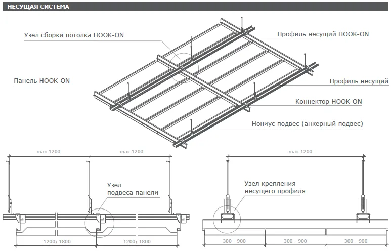 - Профиль несущий Hook-On ПОД КОННЕКТОР L=3000мм