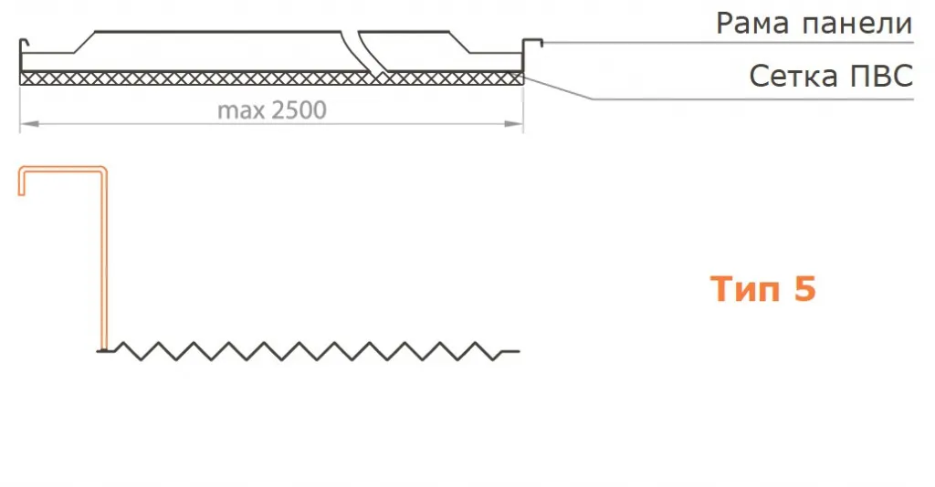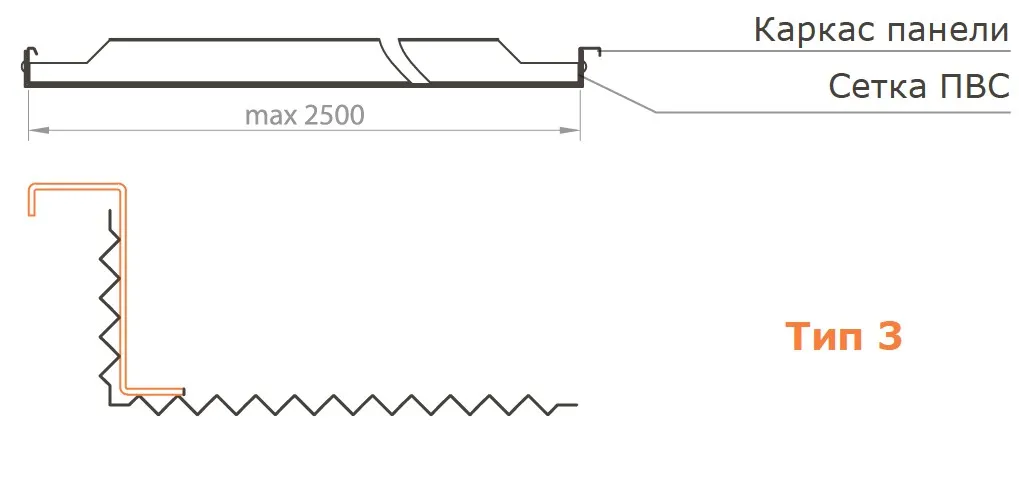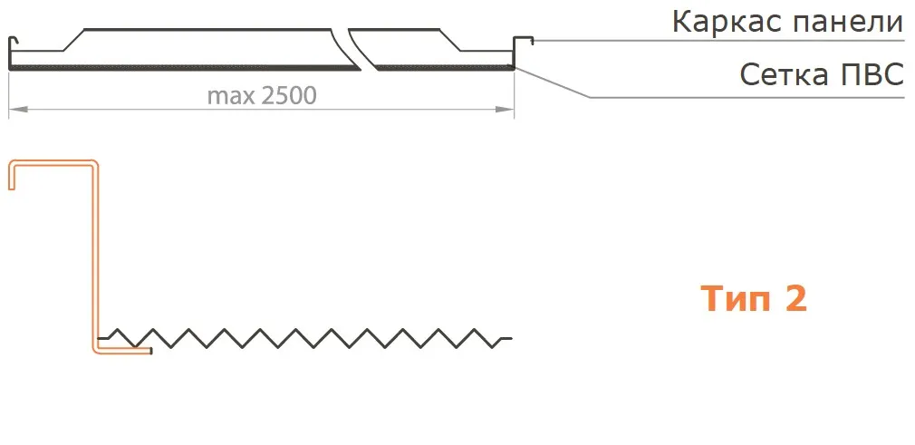 Панель HS с интегрированной сеткой ПВС без видимой рамкиСетка подварена к каркасу панели снизу; каркас панели представляет собой сборную рамку, которая не имеет горизонтальных полочек, сетка приваривается к кромке вертикальных бортов.Варианты используемой сетки: R16 «чешуя», RB35, RB44, RB75 «чешуя», RB75A «ромб», Exa 05 «чешуя» и их производные. Толщина листа заготовки от 1,2 мм. |