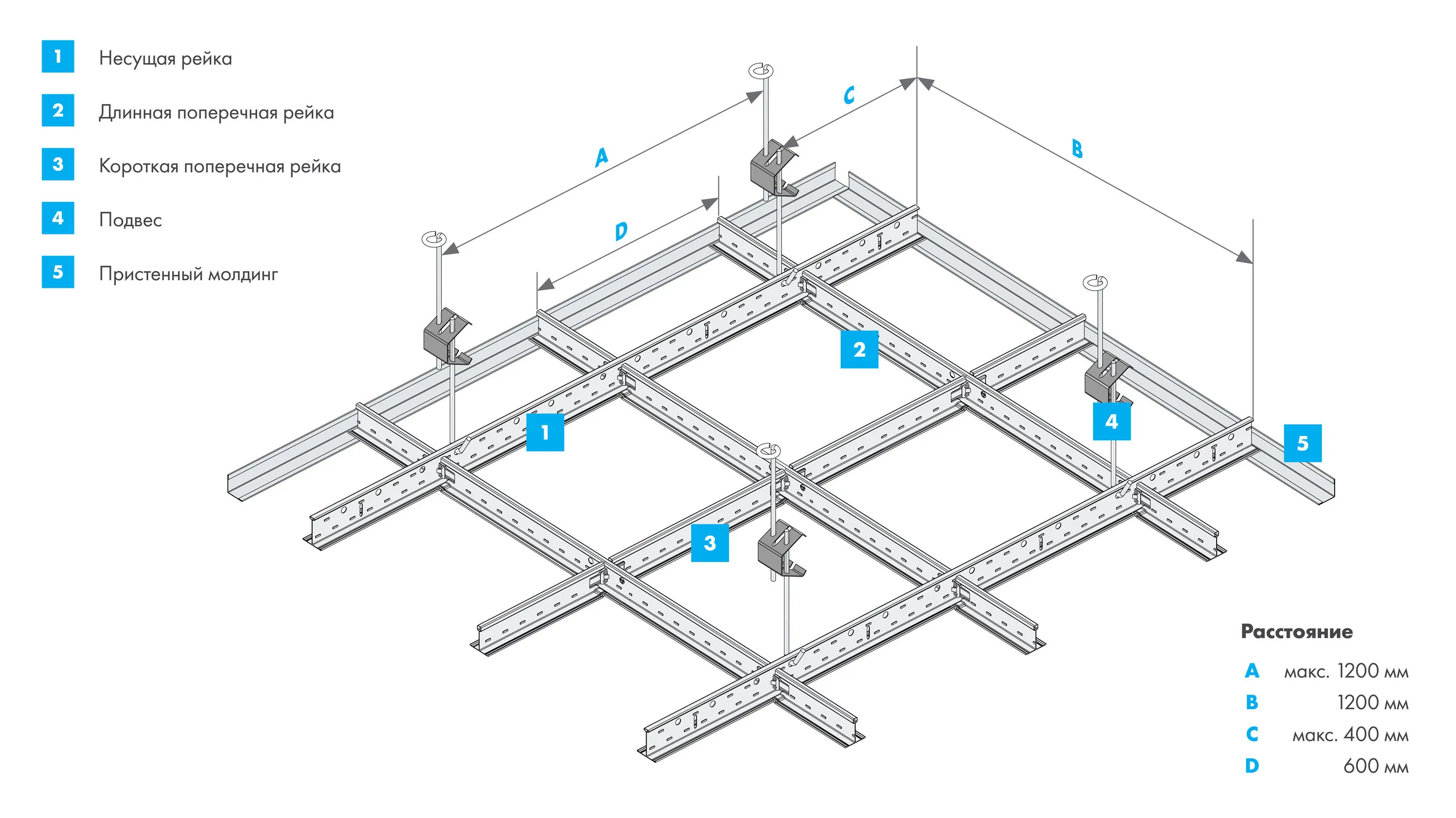 Армстронг Кнауф Т-24 — это видимая подвесная система шириной 24 мм. Поперечная рейка длиной 600 мм используется для формирования ячеек каркаса и крепления потолочных плит с кромкой Board и Tegular 24.
